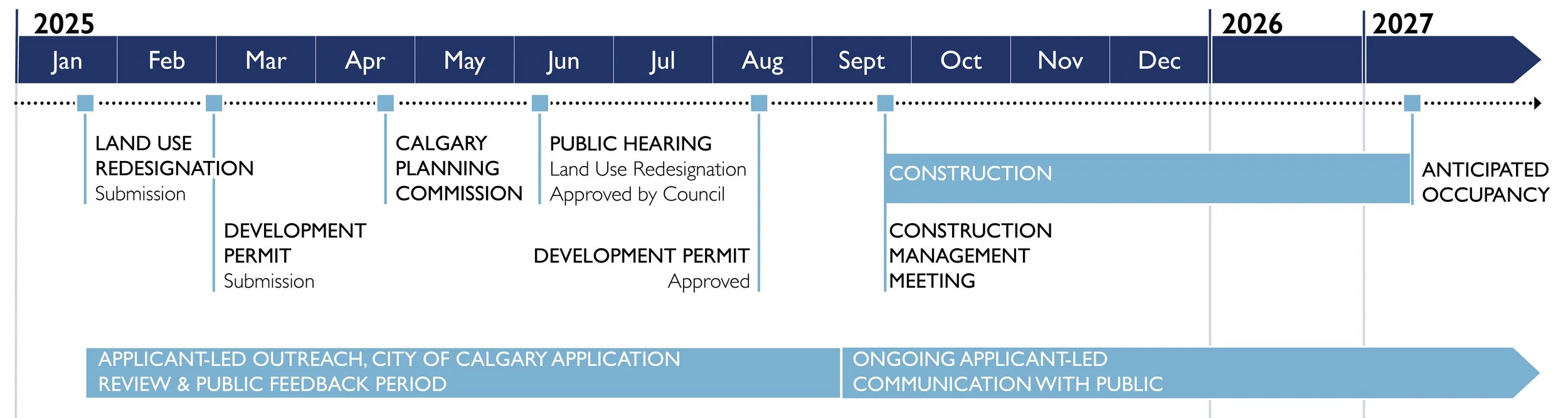 Similar to all Land Use and Development Permit applications, the applications for Boro Block will go through a comprehensive review by City of Calgary Administration. The City of Calgary prioritizes the review of affordable housing proposals which results in a ±4 to 6 month timeline from the application’s submission to a final decision.